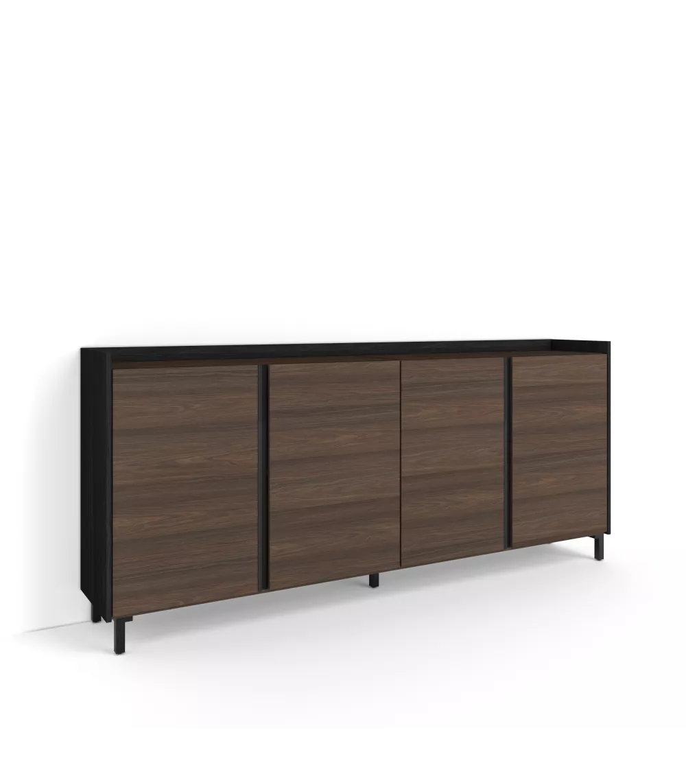 Skraut Home | Aparadores para salón | Gran capacidad de almacenaje | 207x91x35 cm | 4 Puertas | Diseño industrial | Estilo Moderno | Roble oscuro y Negro