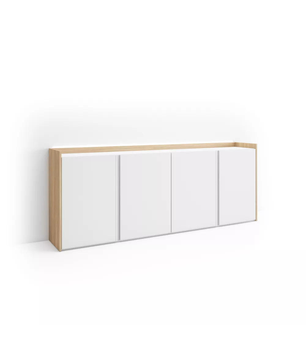 Skraut Home | Aparadores para salón | Gran capacidad de almacenaje | 207x80x35 cm | 4 Puertas | LED | Estilo Moderno | Blanco y roble soft