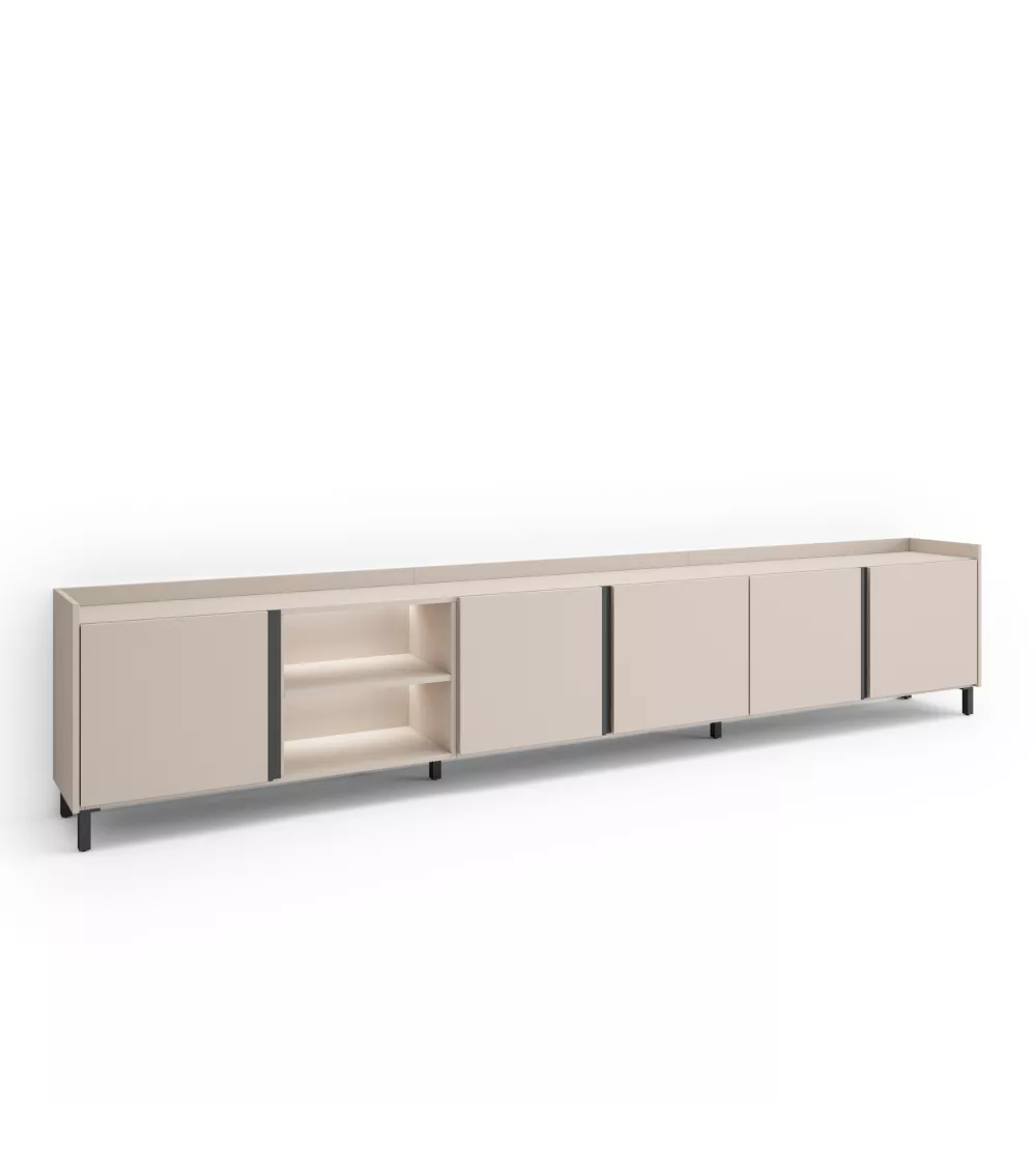 Skraut Home | Mueble TV | Televisión | Muebles de salón, almacenaje | 309x61x35 cm | Para TV hasta 80" | Diseño industrial | LED | Estilo Moderno | Beige
