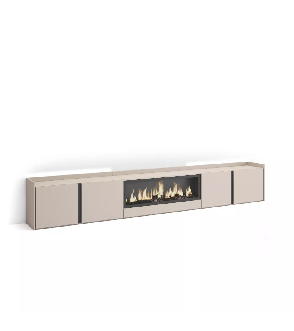 Skraut Home | Mueble TV | Televisión | Muebles de salón, almacenaje | 315x50x35 cm | Para TV hasta 80" | Chimenea eléctrica XXL | LED | Estilo Moderno | Beige