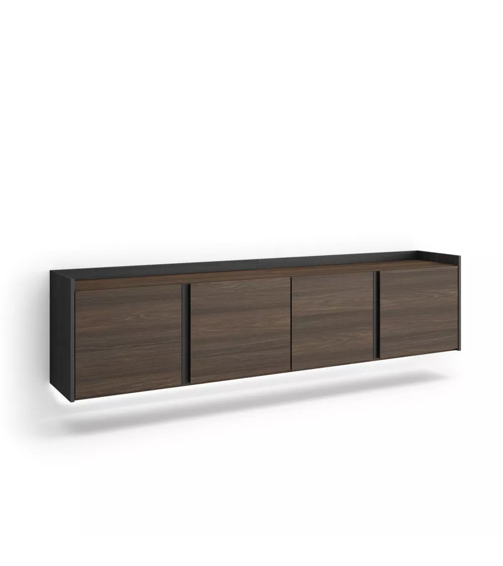 Skraut Home | Mueble TV | Televisión | Muebles de salón, almacenaje | 207x50x35 cm | Para TV hasta 80" | Colgado, Suspendido | LED | Estilo Moderno | Roble oscuro y Negro