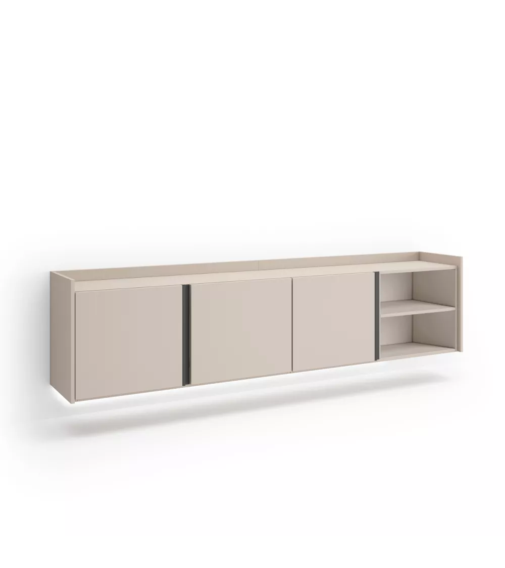 Skraut Home | Mueble TV | Televisión | Muebles de salón, almacenaje | 207x50x35 cm | Para TV hasta 80" | Colgado, Suspendido | LED | Estilo Moderno | Beige