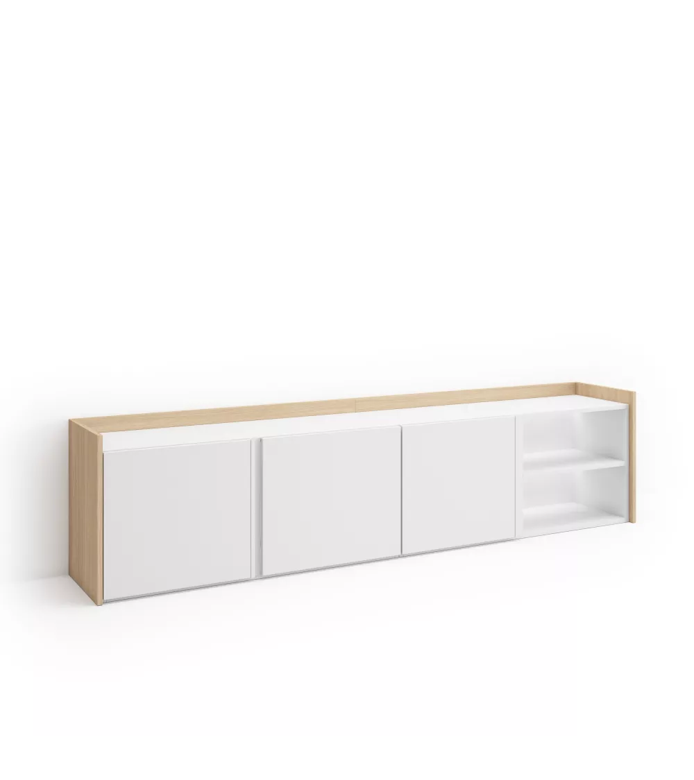 Skraut Home | Mueble TV | Televisión | Muebles de salón, almacenaje | 207x50x35 cm | Para TV hasta 80" | LED | Estilo Moderno | Blanco y roble soft