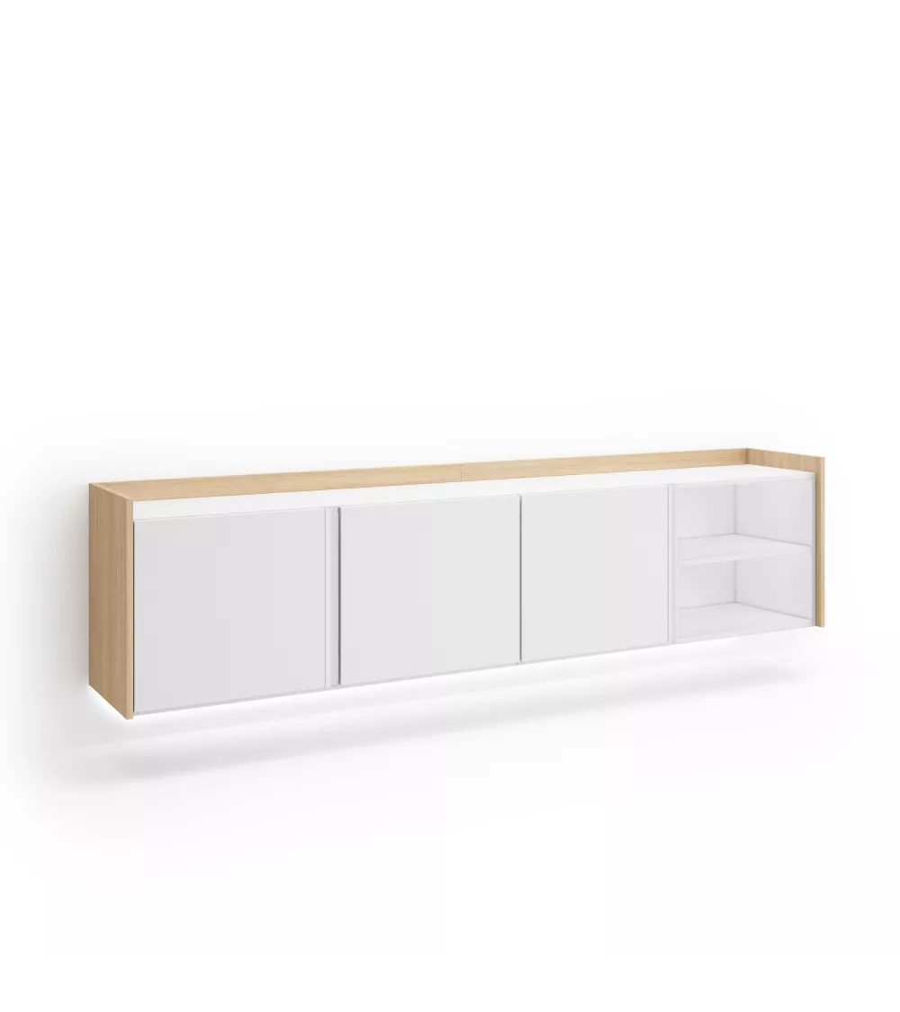 Skraut Home | Mueble TV | Televisión | Muebles de salón, almacenaje | 207x50x35 cm | Para TV hasta 80" | Colgado, Suspendido | LED | Estilo Moderno | Blanco y roble soft
