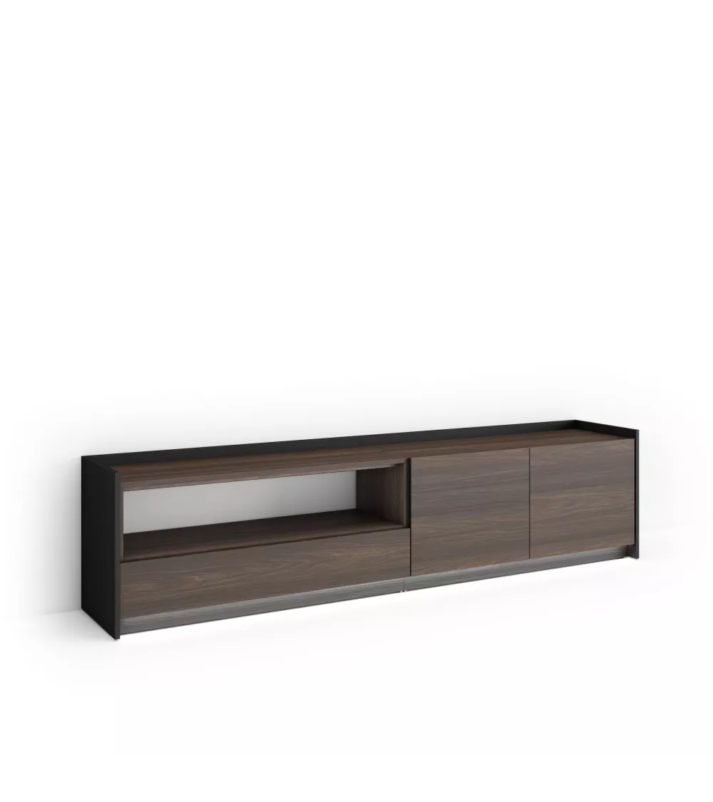 Skraut Home | Mueble TV | Televisión | Muebles de salón, almacenaje | 207x50x37 cm | Para TV hasta 80" | LED | Estilo Moderno | Roble oscuro y Negro