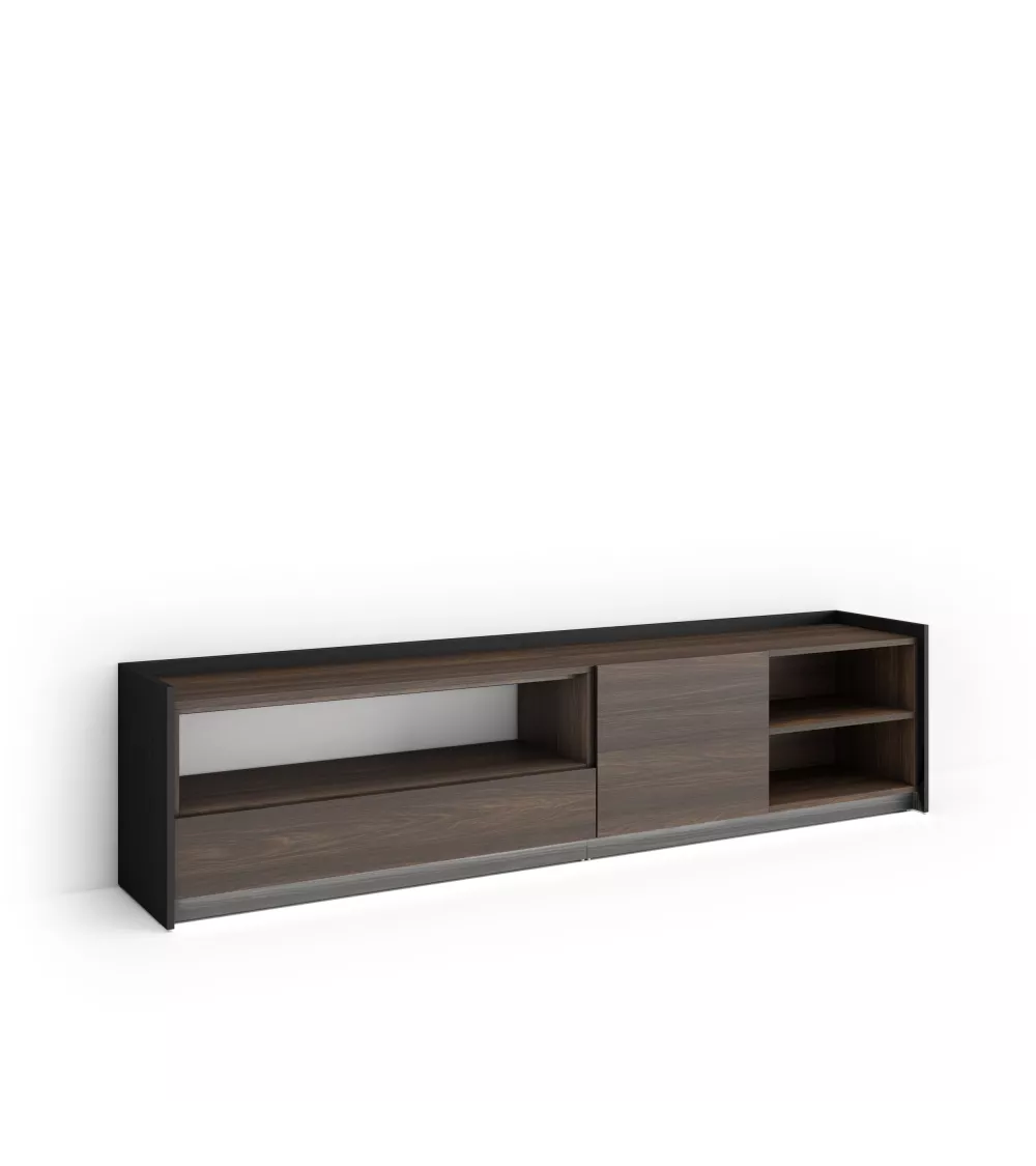 Skraut Home | Mueble TV | Televisión | Muebles de salón, almacenaje | 207x50x37 cm | Para TV hasta 80" | LED | Estilo Moderno | Roble oscuro y Negro
