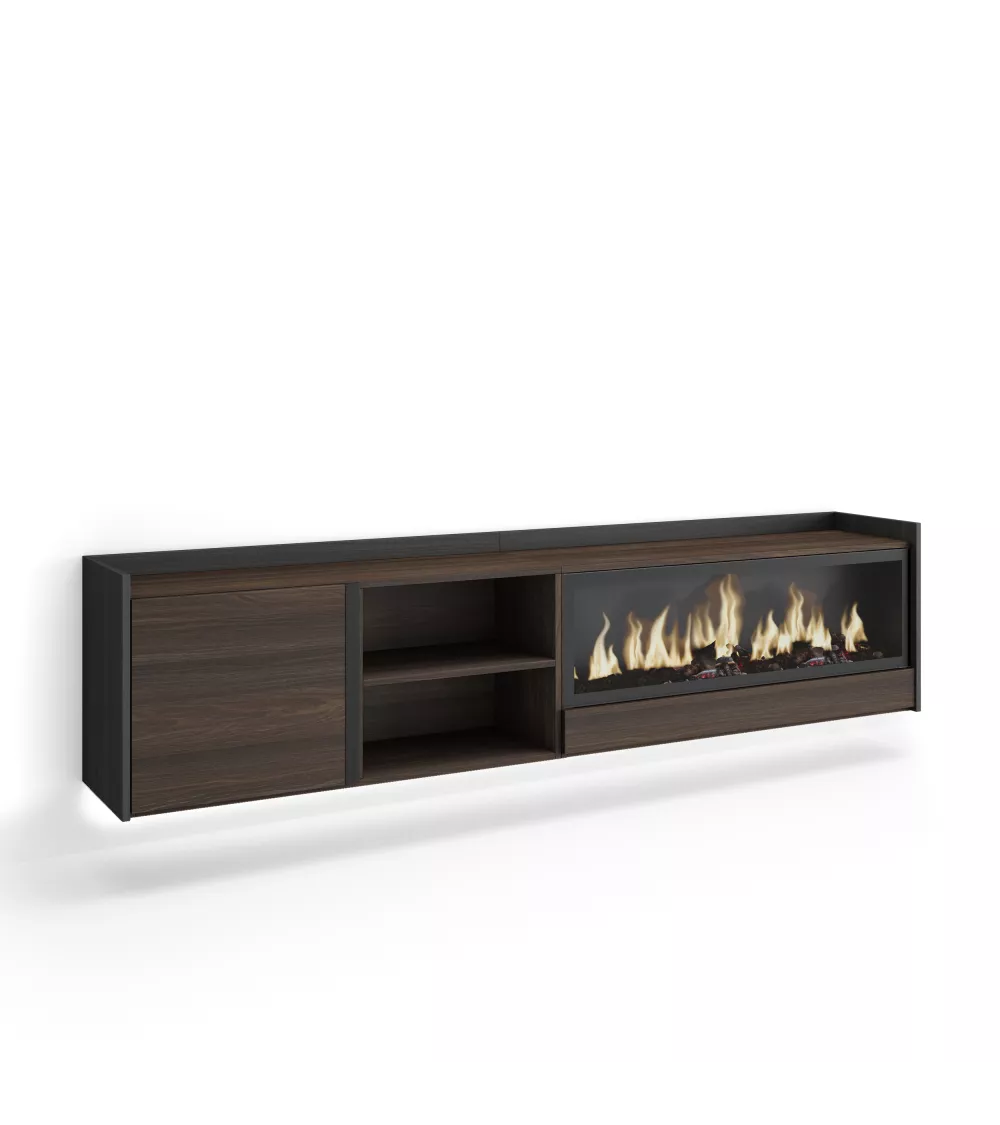 Mueble TV suspendido con chimenea eléctrica y luces LED