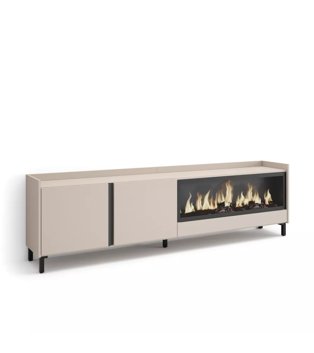Skraut Home | Mueble TV | Televisión | Muebles de salón, almacenaje | 212x61x35 cm | Para TV hasta 80" | Chimenea eléctrica XXL | Diseño industrial | Estilo Moderno | Beige