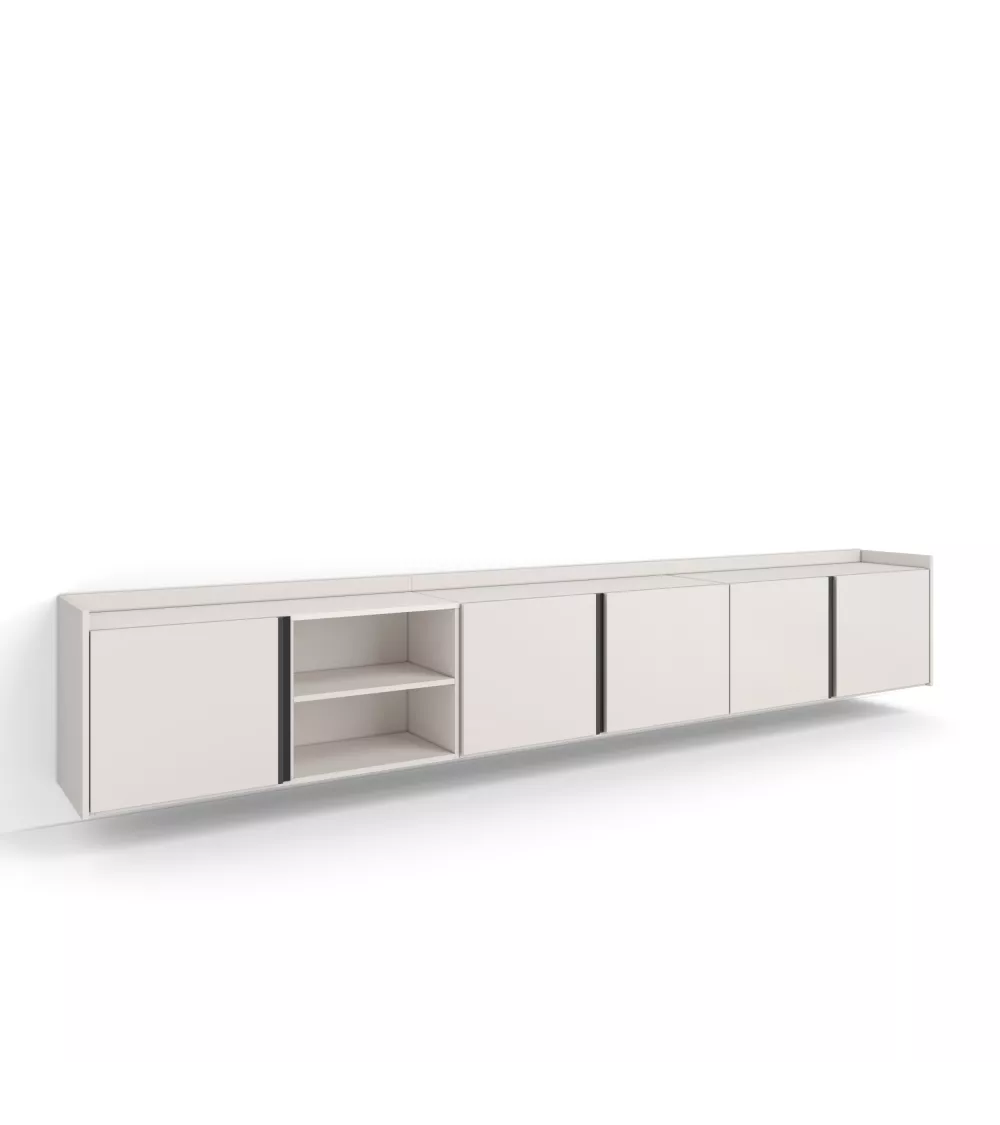 Skraut Home | Mueble TV | Televisión | Muebles de salón, almacenaje | 309x50x35 cm | Para TV hasta 80" | Colgado, Suspendido | Estilo Moderno | Beige
