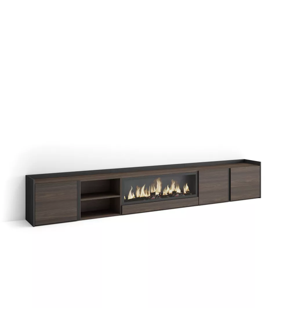 Skraut Home | Mueble TV | Televisión | Muebles de salón, almacenaje | 315x50x35 cm | Para TV hasta 80" | Chimenea eléctrica XXL | Estilo Moderno | Roble oscuro y Negro