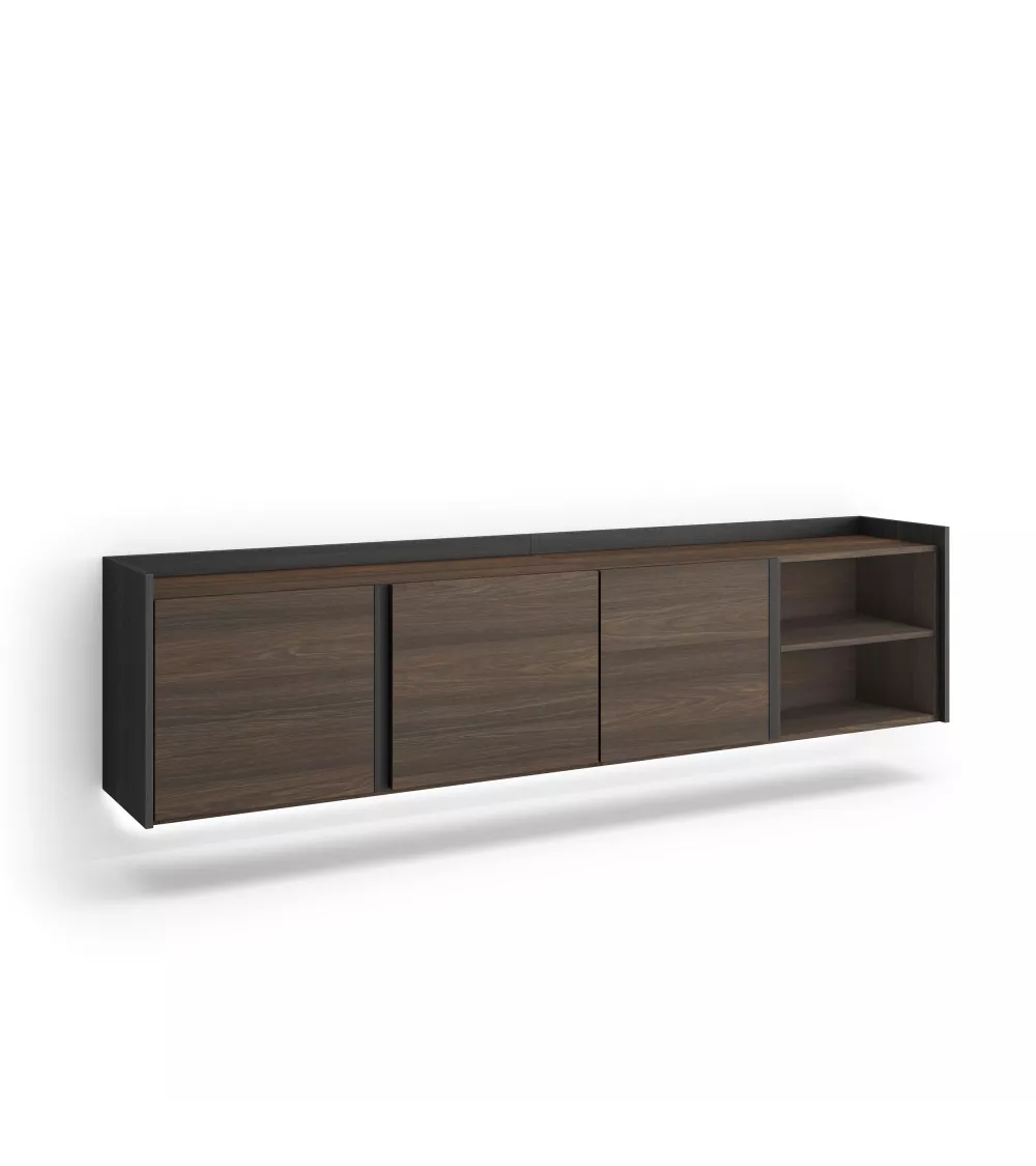 Skraut Home | Mueble TV | Televisión | Muebles de salón, almacenaje | 207x50x35 cm | Para TV hasta 80" | Colgado, Suspendido | LED | Estilo Moderno | Roble oscuro y Negro