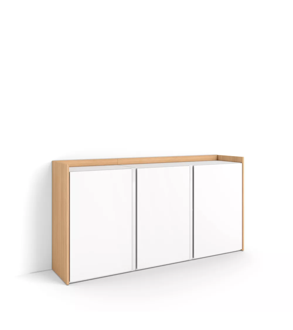 Skraut Home | Buffet salon et cuisine | Meuble de Rangement, Commode | 156x80x35 cm | 3 Portes | Meuble chaussure | Style moderne | Blanc et Chêne Soft