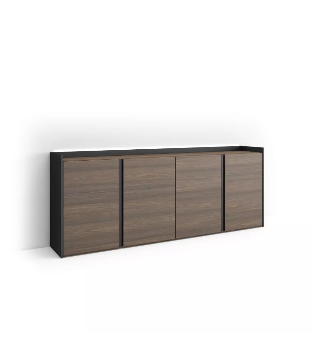 Skraut Home | Buffet salon et cuisine | Meuble de Rangement, Commode | 207x80x35 cm | 4 Portes | LED | Style moderne | Chêne foncé et Noir