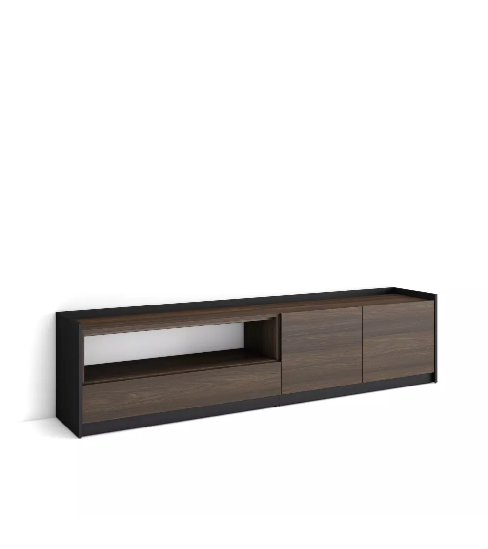 Skraut Home | Meuble TV | Banc Télé | Grand espace de Rangement | 207x50x37 cm | Pour les TV jusqu'à 80" | Meubles de salon | Style moderne | Chêne foncé et Noir