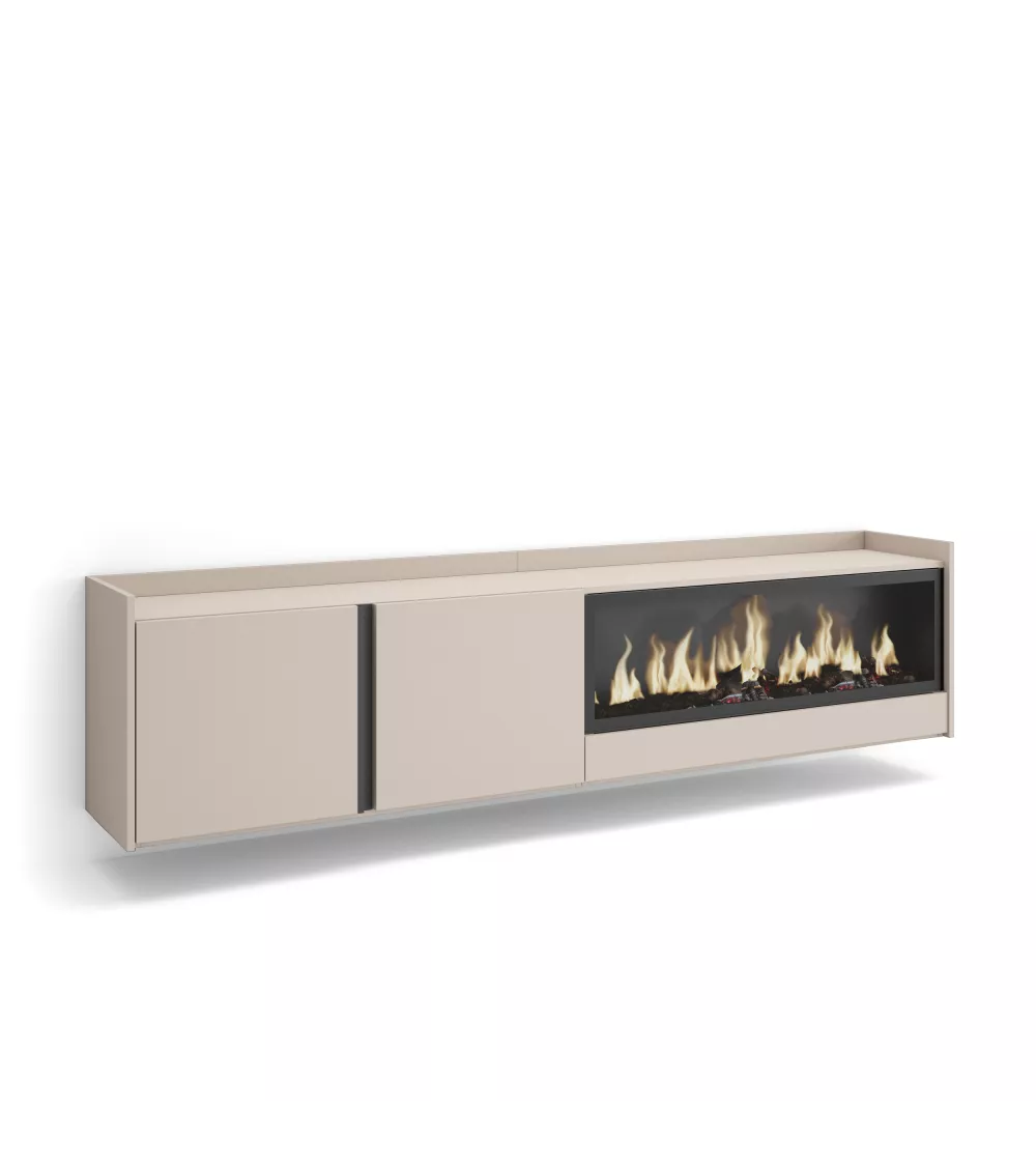 Skraut Home | Meuble TV | Banc Télé | Grand espace de Rangement | 212x50x35 cm | Pour les TV jusqu'à 80" | Cheminée électrique XXL | Suspendu, Mural | Style moderne | Beige
