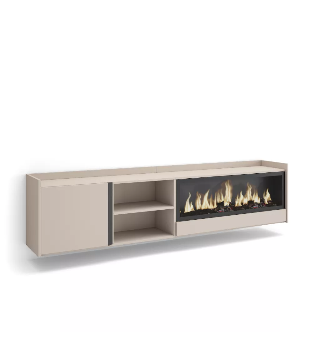 Skraut Home | Meuble TV | Banc Télé | Grand espace de Rangement | 212x50x35 cm | Pour les TV jusqu'à 80" | Cheminée électrique XXL | Suspendu, Mural | Style moderne | Beige