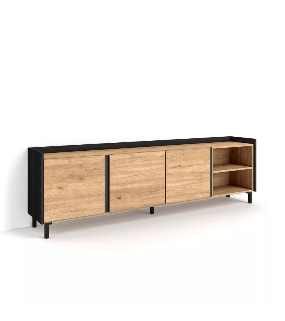 Skraut Home | Meuble TV | Banc Télé | Grand espace de Rangement | 207x61x35 cm | Pour les TV jusqu'à 80" | Design industriel | Style moderne | Chêne et noir