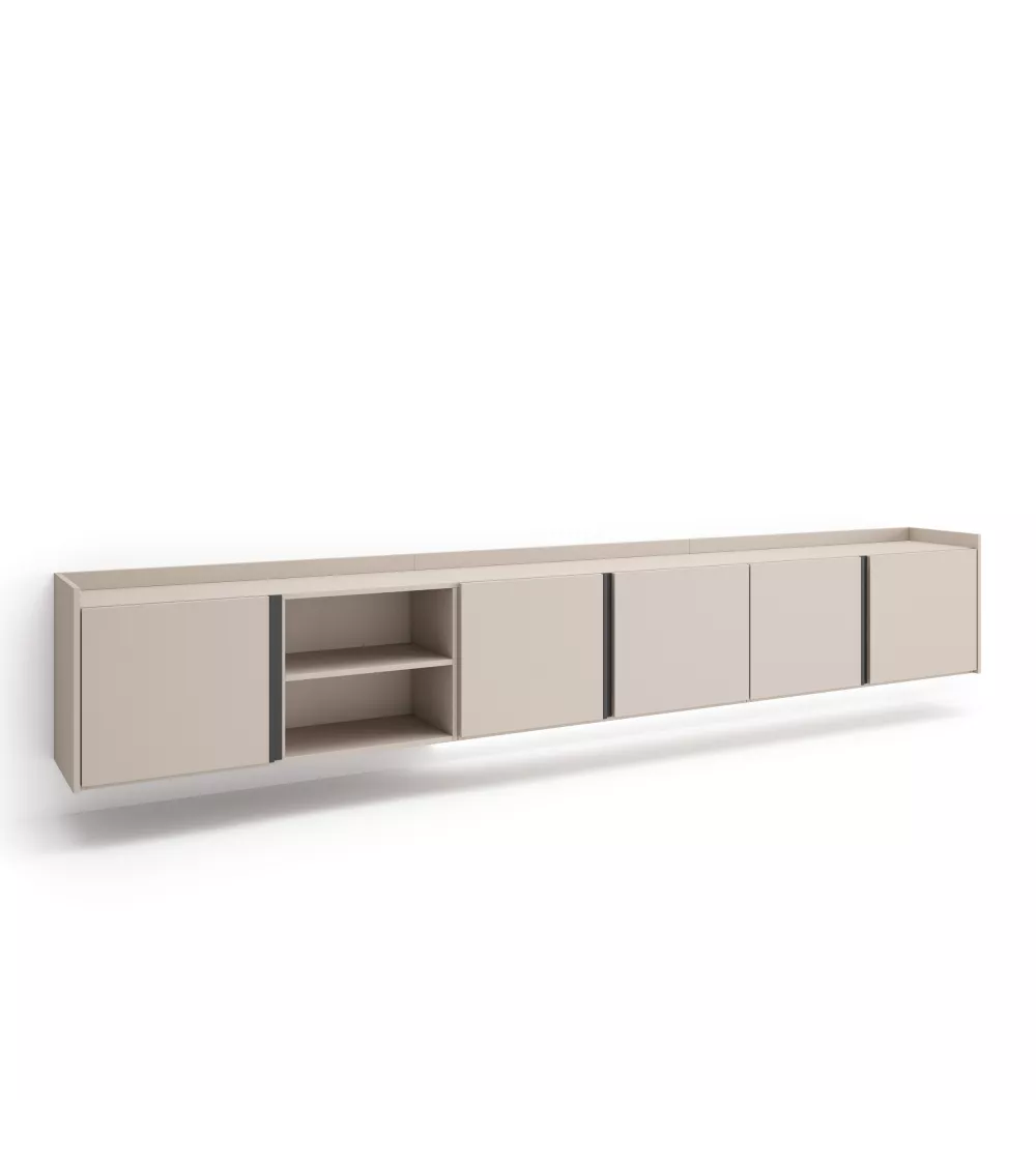 Skraut Home | Meuble TV | Banc Télé | Grand espace de Rangement | 309x50x35 cm | Pour les TV jusqu'à 80" | Suspendu, Mural | LED | Style moderne | Beige